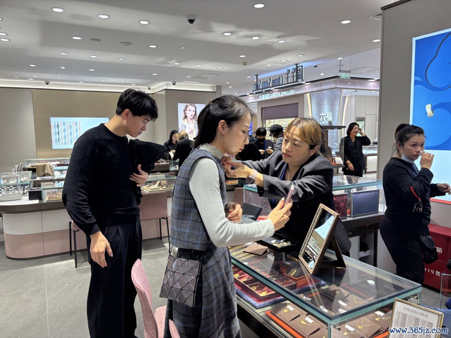 而在二楼的黄金饰品区域,各个品牌门店里皆有耗尽者,挑项目、算价钱,热度更高几分。“全场计价黄金饰品每克优惠40元,大部分一口价金饰品打88折,在这些品牌步履的基础上,咱们还能收券。”周生生店长李晓东说,淌若用足优惠,金饰品能打到75折。
